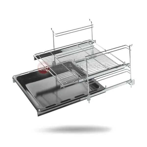 - Backbleche und Grills liegen fest und zuverlässig auf den Schienen. Selbst unter schweren Lasten ganz ohne Kippen.