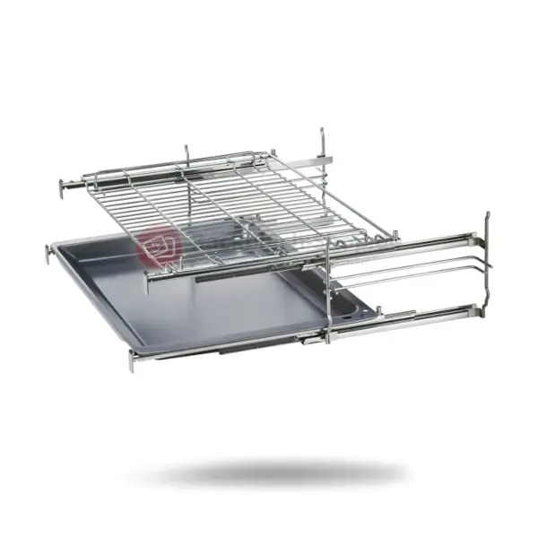 - Mit dem 2-fach Teleskopauszug mit Stoppfunktion können Sie Backbleche, Gitterroste oder die Universalpfanne auf zwei Ebenen herausziehen.